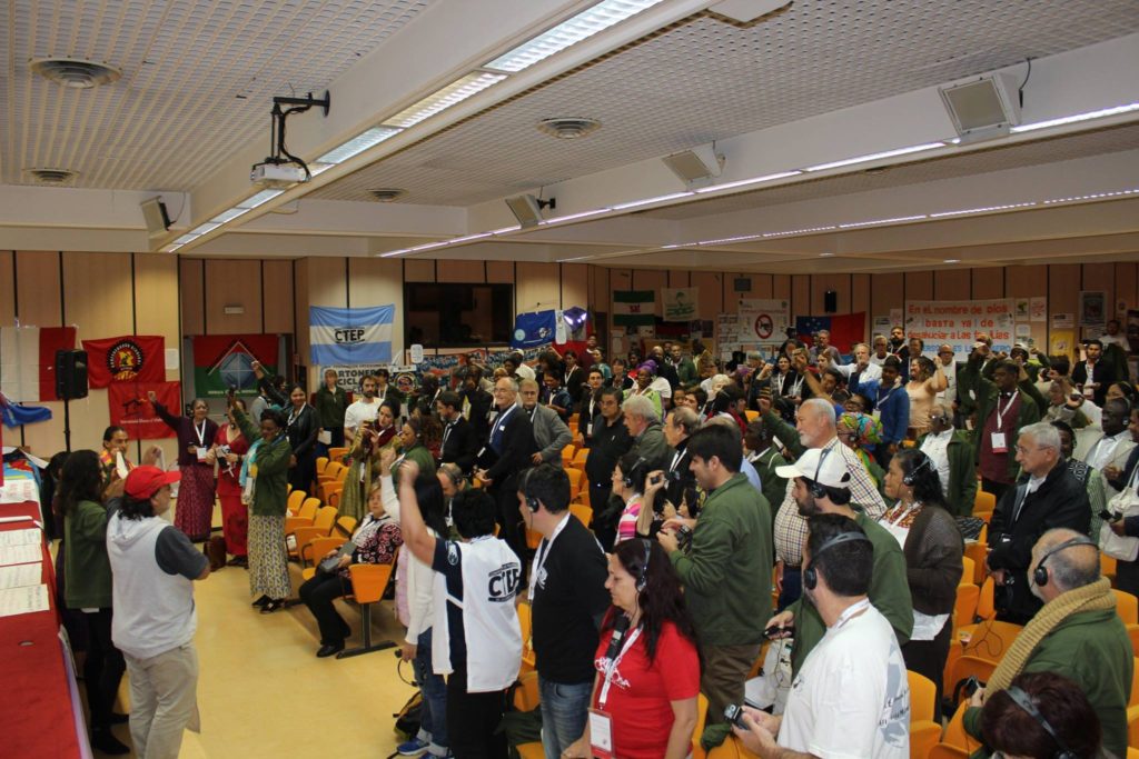 panel-tynEn la segunda jornada de trabajo del III Encuentro Mundial de los Movimientos Populares, ha comenzado con un reconocimiento y homenaje a todas las personas que han perdido la vida por motivo de sus luchas y justas causas. En este sentido, ha estado muy presente la activista Berta Cáceres, asesinada por su defensa medioambiental en Honduras, y que participó en la primera edición de este encuentro. Acto seguido, comenzó el panel de “Territorio y Naturaleza”.